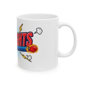 Bright, glossy ceramic mug printed with bold, comic-inspired artwork that brings playful energy to morning coffee or late-night gaming sessions. The vibrant inks pop against the durable white ceramic, creating a sharp, colorful centerpiece on your desk or shelf. Comfortable C-handle and a shiny finish make it easy to sip from and fun to display. Built to handle daily use — microwave and dishwasher safe, and free from lead and BPA — this mug is for anyone who wants a little extra personality with every drink.